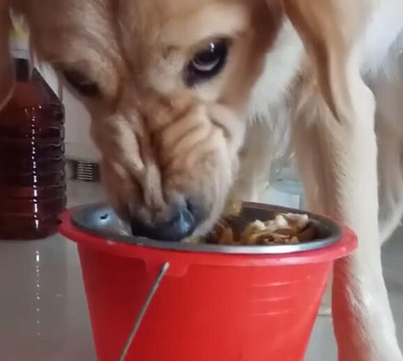 金毛狗狗护食严重,吃饭的时候,连主人都不敢靠近,这狗还能要吗
