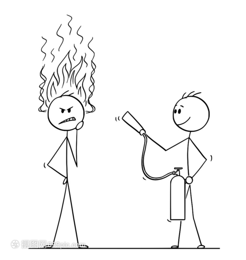 卡通棒图描绘了人类或商对火焰从头冒出的
