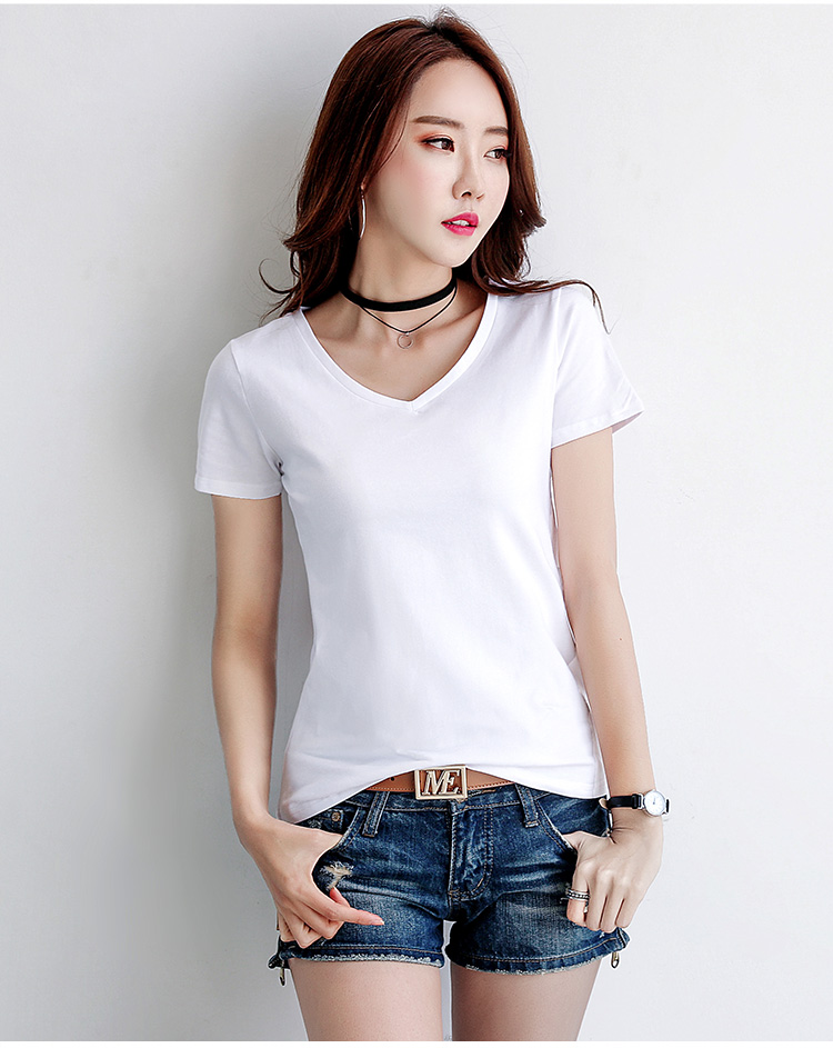 【特卖】雅力玫颖 夏季短袖白色V领t恤女士