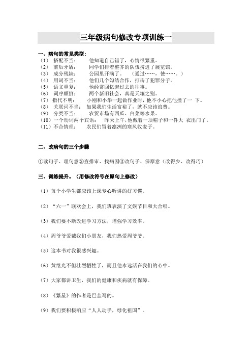 三年级病句修改专项训练题