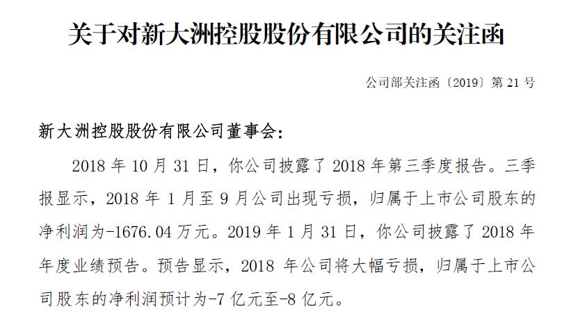 [天眼]新大洲A预亏7-8亿收关注函 单季新增