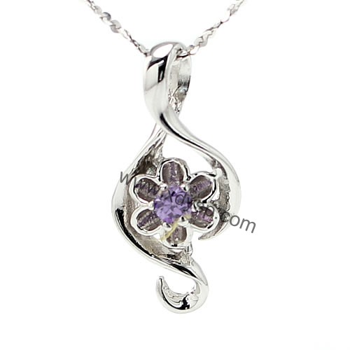 925纯银镶锆吊坠,心中花项坠,规格:9.5x19.5