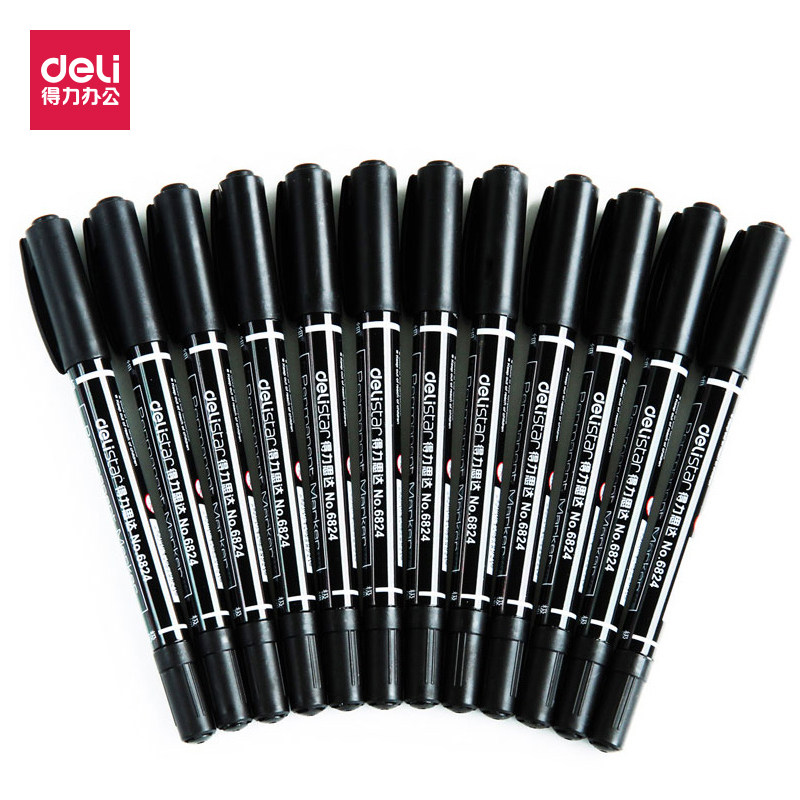 得力文具6824记号笔 勾线笔CD光盘笔 双头油性笔记号笔儿童画画笔