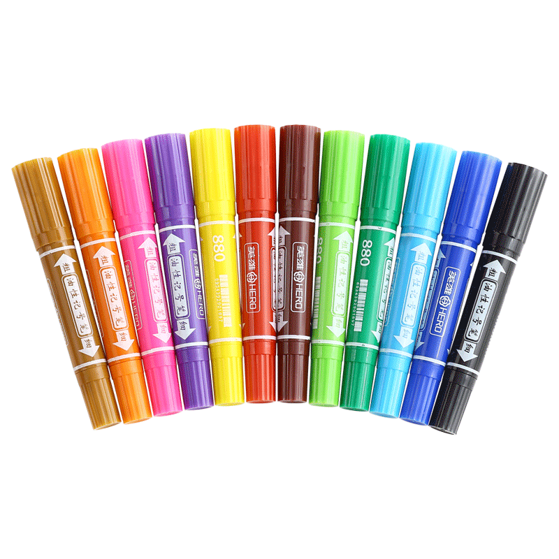 英雄880记号笔12色24色油性笔双头彩色记号笔黑色马克笔pop海报笔