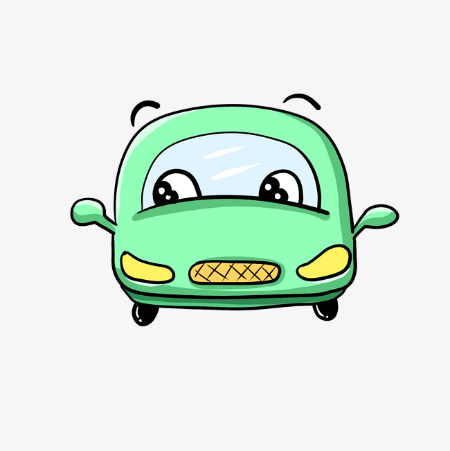 浅绿色的活泼可爱的卡通小轿车素材图片