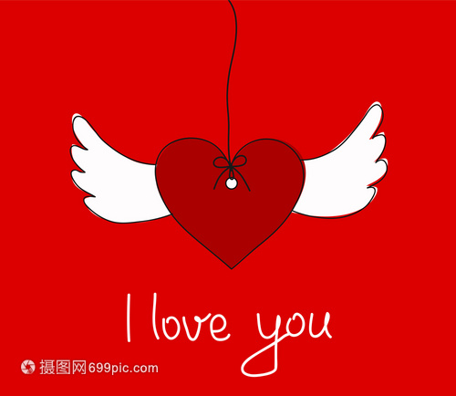 我爱你的贺卡挂心和翅膀股票矢量插图