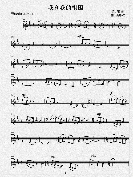 小提琴曲我爱你中国正谱子五线谱乐谱曲谱歌谱高清.pdf