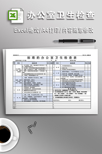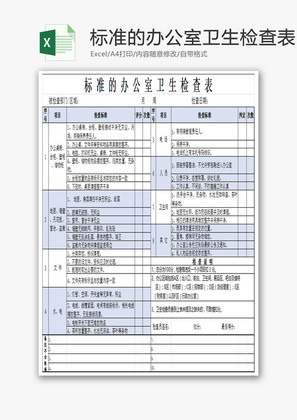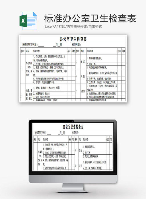 标准办公室卫生检查表Excel模板免费下载_办公简历模板