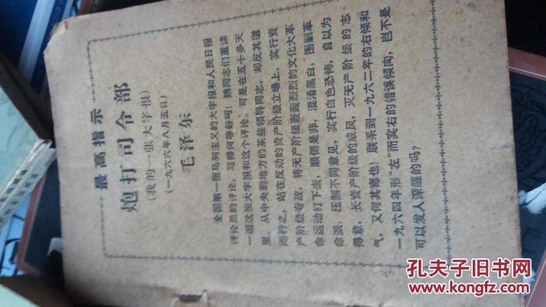 年 毛主席 炮打司令部;我的一张大字报!