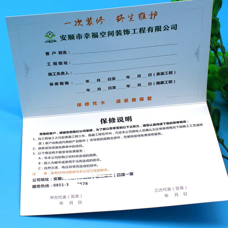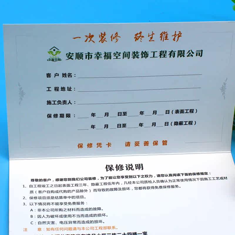 保修卡 装饰公司 折页图片