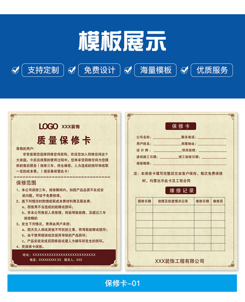 装饰公司保修卡