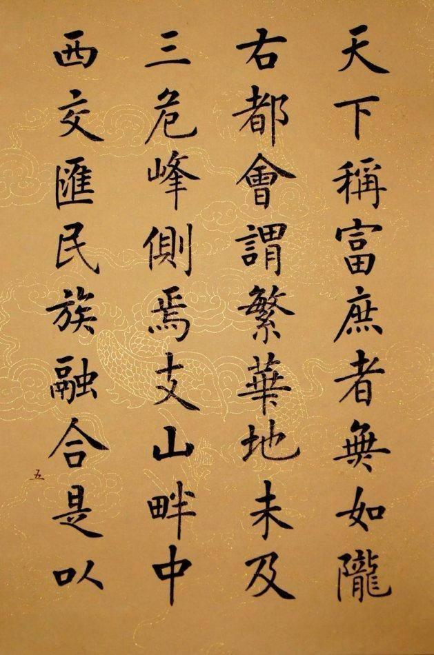 华阳的楷书本身来自欧洲风格,所以他的楷书严谨、流畅、端庄。这是学习欧式楷书的优势,但欧阳询的结构有一个危险,他似乎从未学过。作者多次谈到欧洲楷书的危险。华阳不仅没有学会,而且历代在欧洲学习的书法家也几乎没有学会这方面的特点。这可能是欧洲楷书成为一个教派的原因之一。也有很多网友说,华阳的楷书在很多地方和他的老师卢中南很像。有时甚至有些网民说是卢中南写的。可以看出,华阳不仅在欧洲楷书方面下了很大功夫,而且还认真研究了卢中南的楷书。