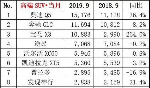 |仍是奥迪Q5在1999年赢得的。自从六月份赢得冠军以来,这已经是连续第四个月了。作为国内豪华SUV的先锋车型之一,奥迪Q5拥有较大的市场份额。新款奥迪Q5在上市之初销售不佳。它被奔驰GLC压制了好几个月,甚至输给了宝马X3。现在,在大折扣的推动下,其销量在最近几个月稳步上升。从7月到9月,分别售出了13,226辆、13,785辆和15,176辆汽车。其中,去年9月份同比增幅高达36.4%。可以看出,只要降价幅度足够大,仍有许多消费者对奥迪Q5感兴趣。