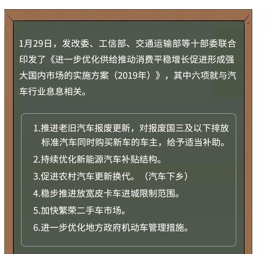 10年后,2019年10个部门联合推出的《实施方案》明确提出鼓励农村汽车消费升级,“有条件的地方,农村居民可以对报废三轮汽车、购买3.5吨以下卡车或1.6升以下乘用车给予适当补贴。”这也被认为是新一轮的“汽车下乡”政策。