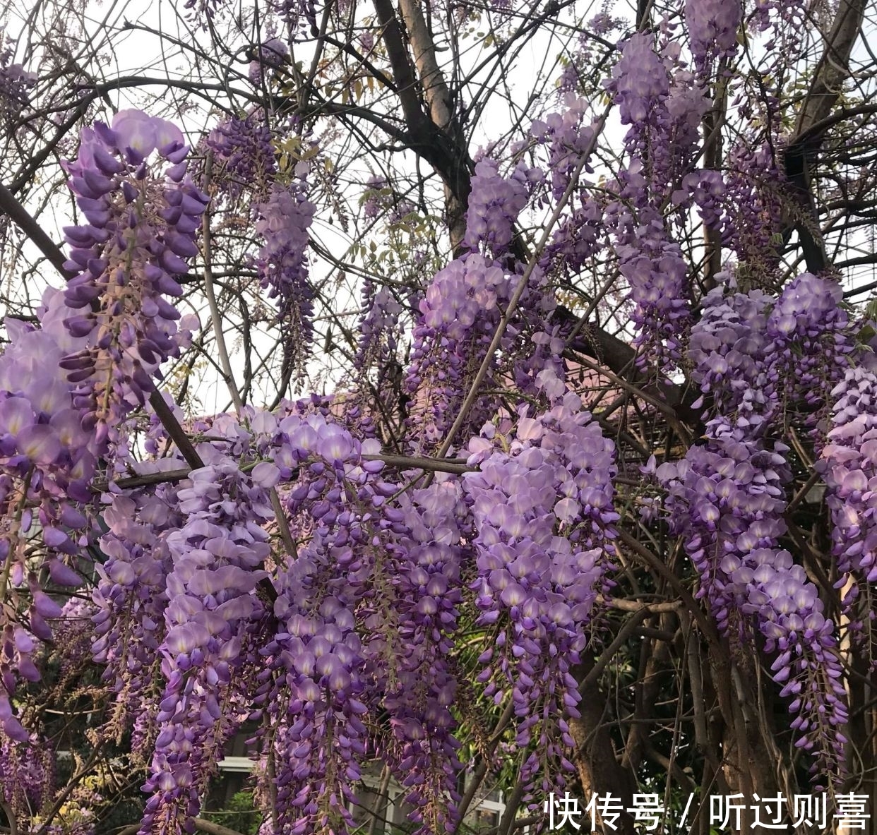 看这幅画,你非常喜欢吗?紫藤也属于先花后叶,然后花和叶同时生长。每年的这个时候,紫藤开花是一个场景。