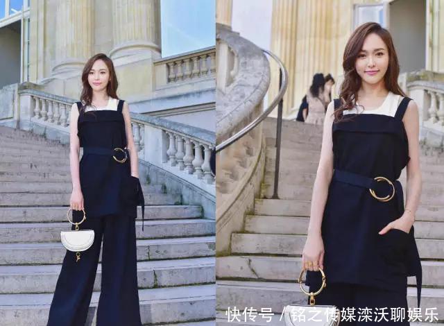 唐嫣的一体式宽腿裤让她看起来更高,吊裤带的款式给裙子增添了一点女性气质经典无误的黑白配色,加上精致小巧的白色手袋和里面的衣服搭配,真是太完美了。此外,腰上的金戒指和手提袋上的戒指也巧妙地采用了相同的款式。总体来说,法国风格的现代着装方法非常迷人。