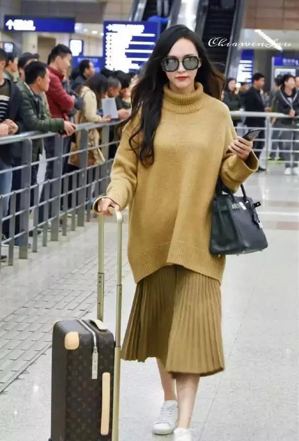 除了连衣裤,唐嫣在搭配其他衣服时也很有品味。例如,这套年轻而温和的服装看起来非常好。唐嫣用毛衣和超短裙作为基本造型。针织品确实很容易软化一个人的线条,但是要记得选择这种宽松或粗糙的图案,这样会显得温柔、懒散和随意。