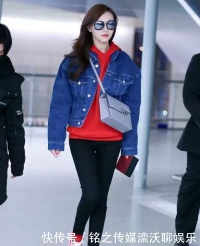 红色连帽背心和平底鞋表明唐嫣有着更白皙的肤色和更好的肤色。虽然外套中的牛仔裤没有蓝宝石蓝那么饱和,但深蓝色在日常生活中会更加多样。斜挎包和钱包的选择也遵循整体红蓝对比的基调,看起来很舒适,一点也不夸张。修身的黑色铅笔裤非常有腿部形状。如果腿形不好的女孩可以穿直筒裤,穿着效果也很时尚。