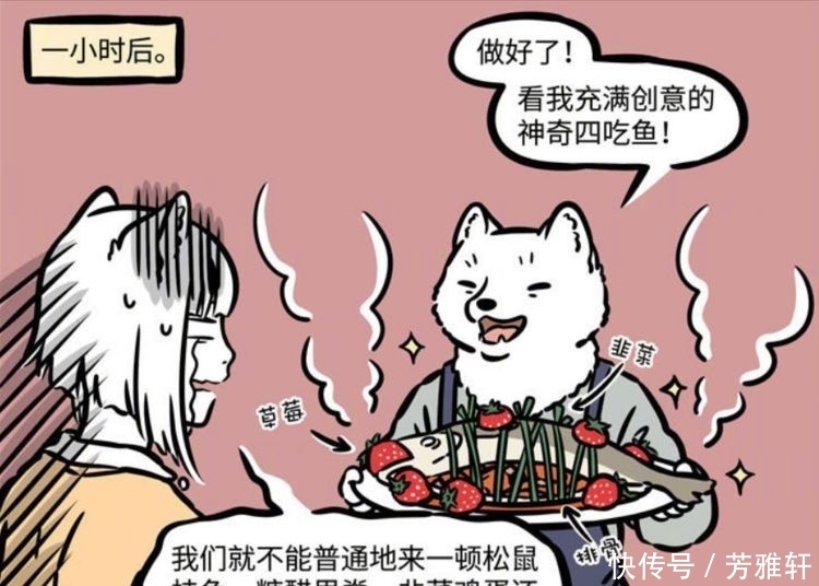 。然而,在九月,我父亲兴高采烈地招待了一位非常...光头菜"神奇四吃鱼",它把所有的配料都放在一个盘子里,甚至是草莓。