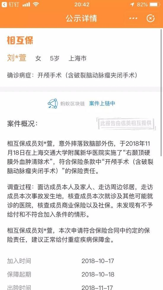 相互宝公示首例互助案例 每人3分钱帮助5岁重