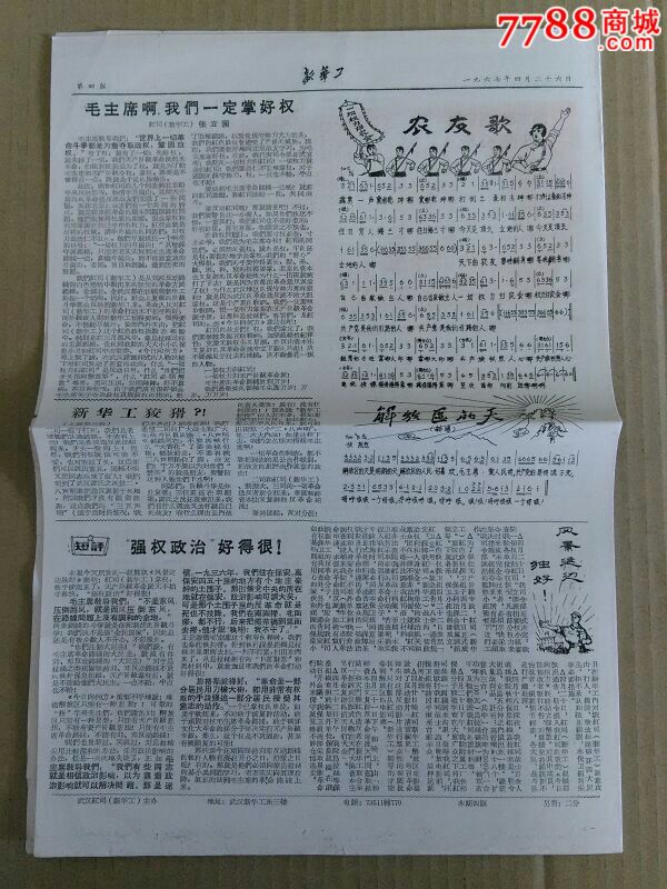 新华工(1967.4.26),报纸,正常发行版,文革前期(
