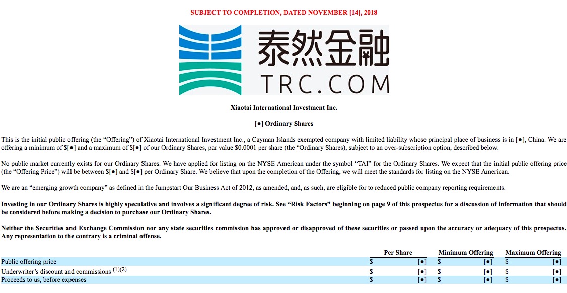 泰然金融赴美递交招股书:拟募资最多2000万美