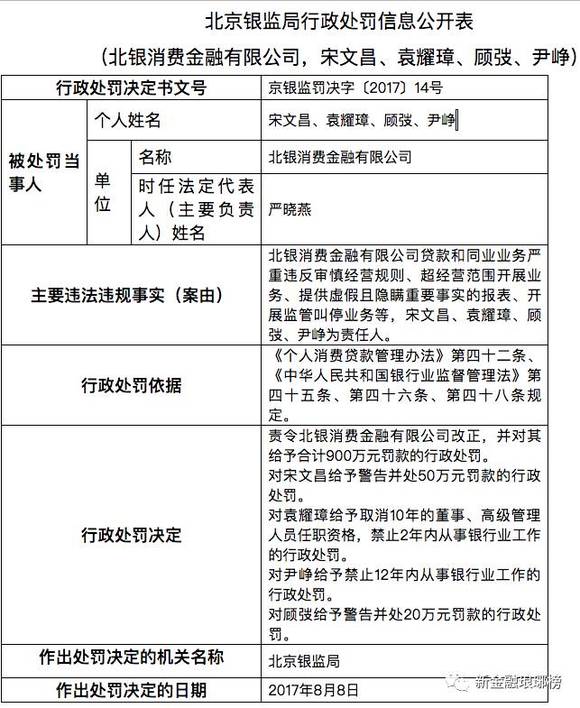 监管动态丨北银消费金融公司因严重违规被罚9