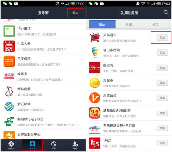 支付宝钱包添加服务窗邮政电子银行最后一步账