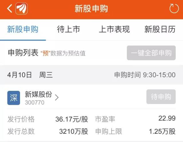 12.5万顶格申购新媒股份,敬请投资者注意!