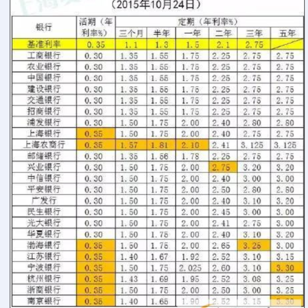 2015降息后哪个银行存款利率最高
