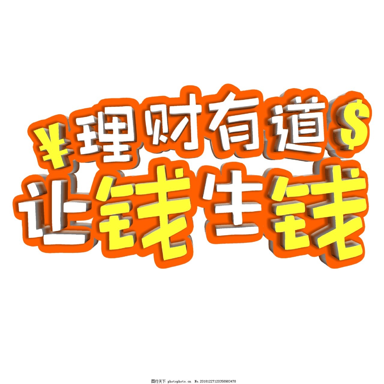 立体理财投资理财有道让钱生钱艺术字图片