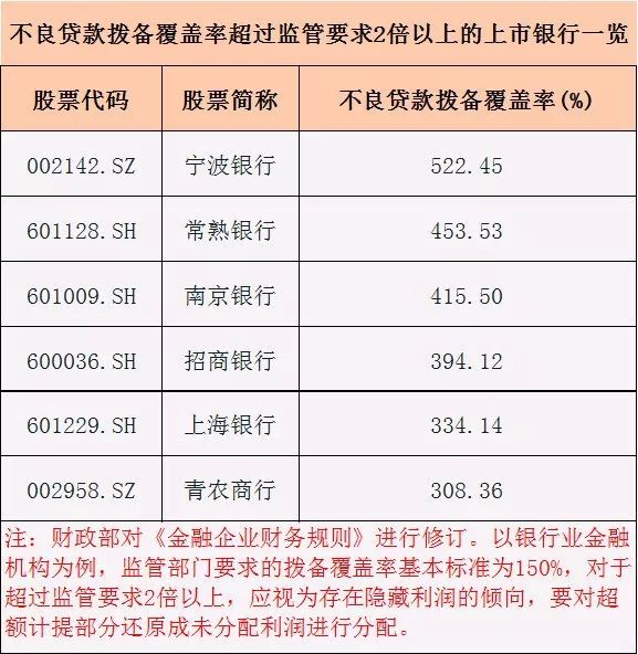 不良贷款拨备覆盖率超过监管要求2倍以上的上