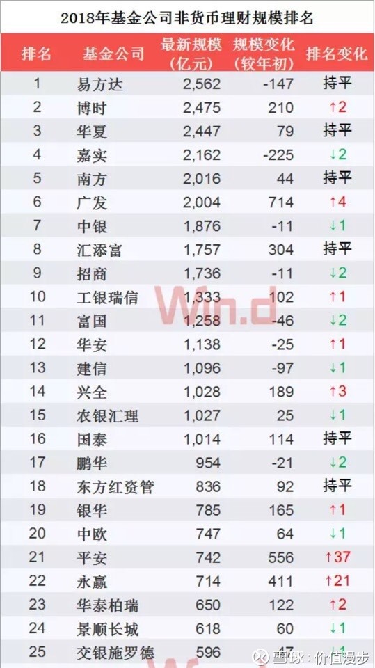 价值漫步: 2018年基金公司规模(剔除货币和理