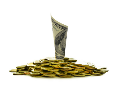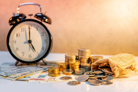 计算器与货币玻璃罐和金币栈, 美元和欧元纸币