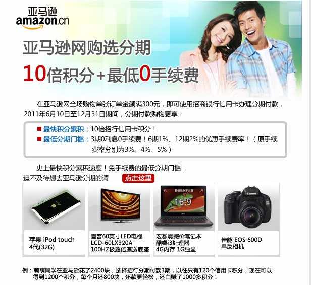 亚马逊分期网购 刷招行信用卡得10倍积分