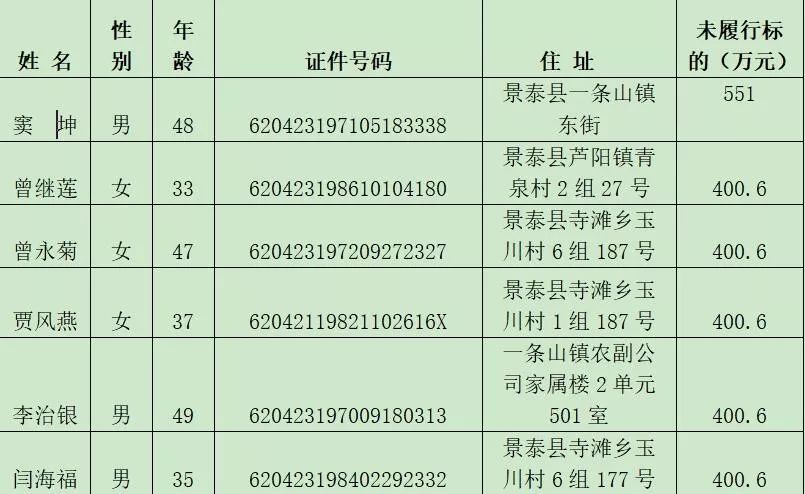 【鼎立信】30人!白银景泰县法院公布一批失信被执行人名单