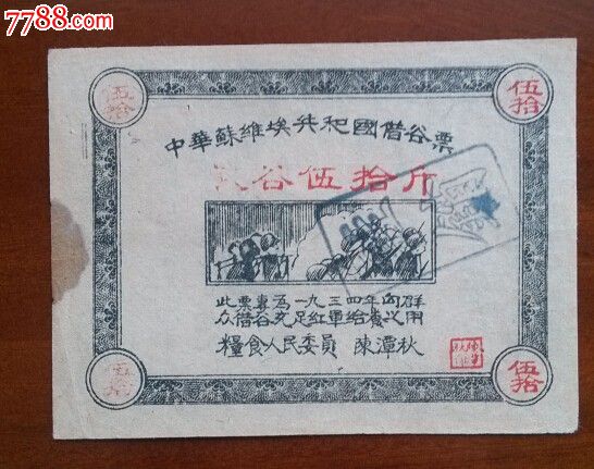 中华苏维埃共和国借谷票3张(有瑞金)-价格:580