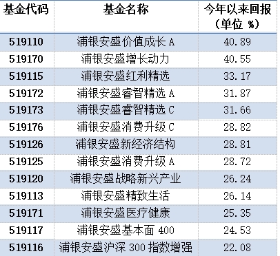 主动管理能力排名第二 浦银安盛旗下五只基金