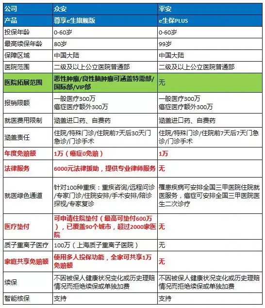 尊享e生PlusVS平安e生保Plus,质子重离子和保