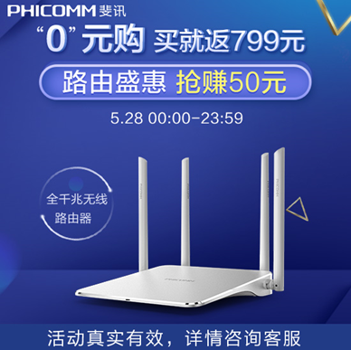 京东斐讯0元购:K3C路由器抢赚100元再送50元