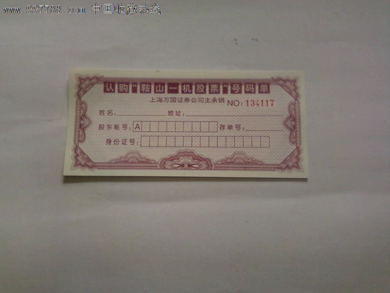 认购证.鞍山一工5枚套-价格:480元-se1198975