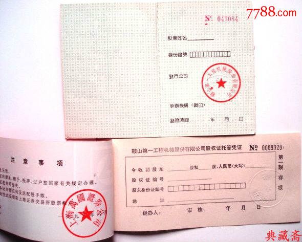 鞍山一工股权证托管凭证(2枚套)【典藏斋\/上市