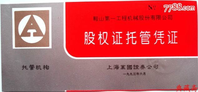 【上市公司】鞍山一工股权证托管凭证(2枚套)