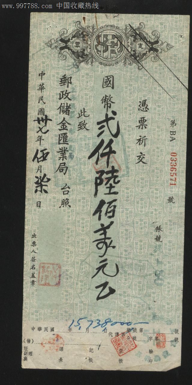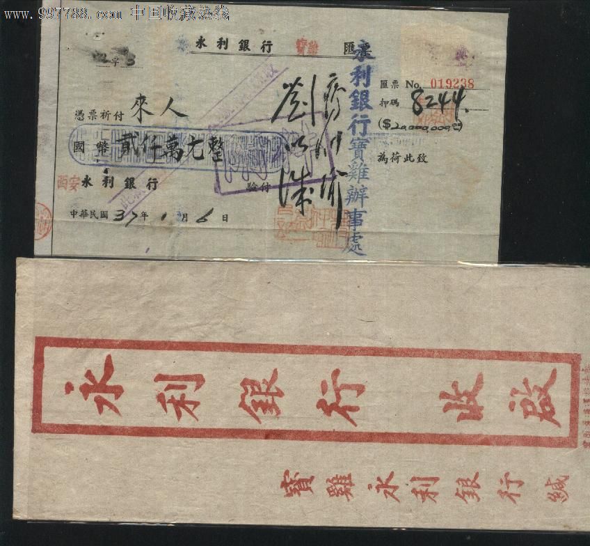 永利银行汇票,支票,划线支票,民国,陕西,其他银行,单件销售,se12351461,零售,七七八八存单