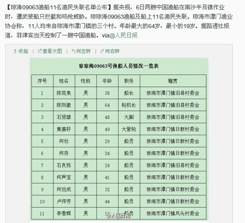 琼海09063渔船11名渔民失联名单公布_新闻_