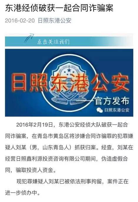 日照公安通报关于对鑫利源投资咨询公司调查情