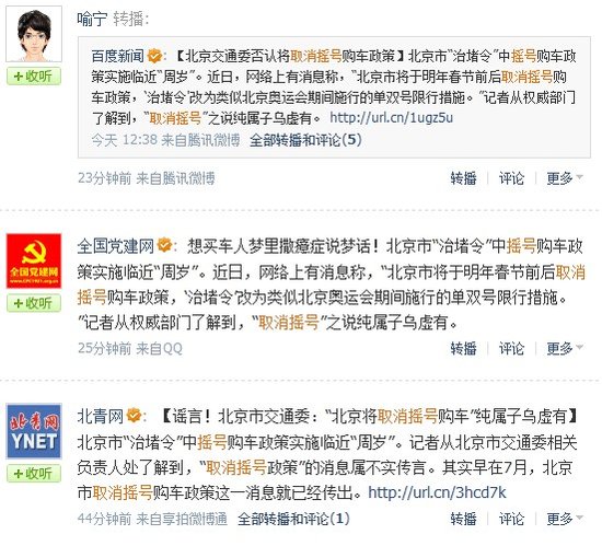 北京市交通委:北京将取消摇号购车纯属子乌虚