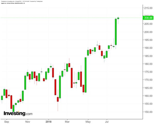 苹果周二股价再创新高 市值逼近微软谷歌总合
