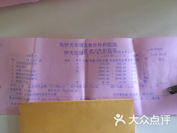 青岛伊美尔国宾整形外科医院消费凭证图片 - 第
