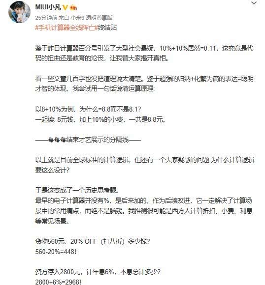 小米产品总监科普为何手机计算器全线阵亡:全
